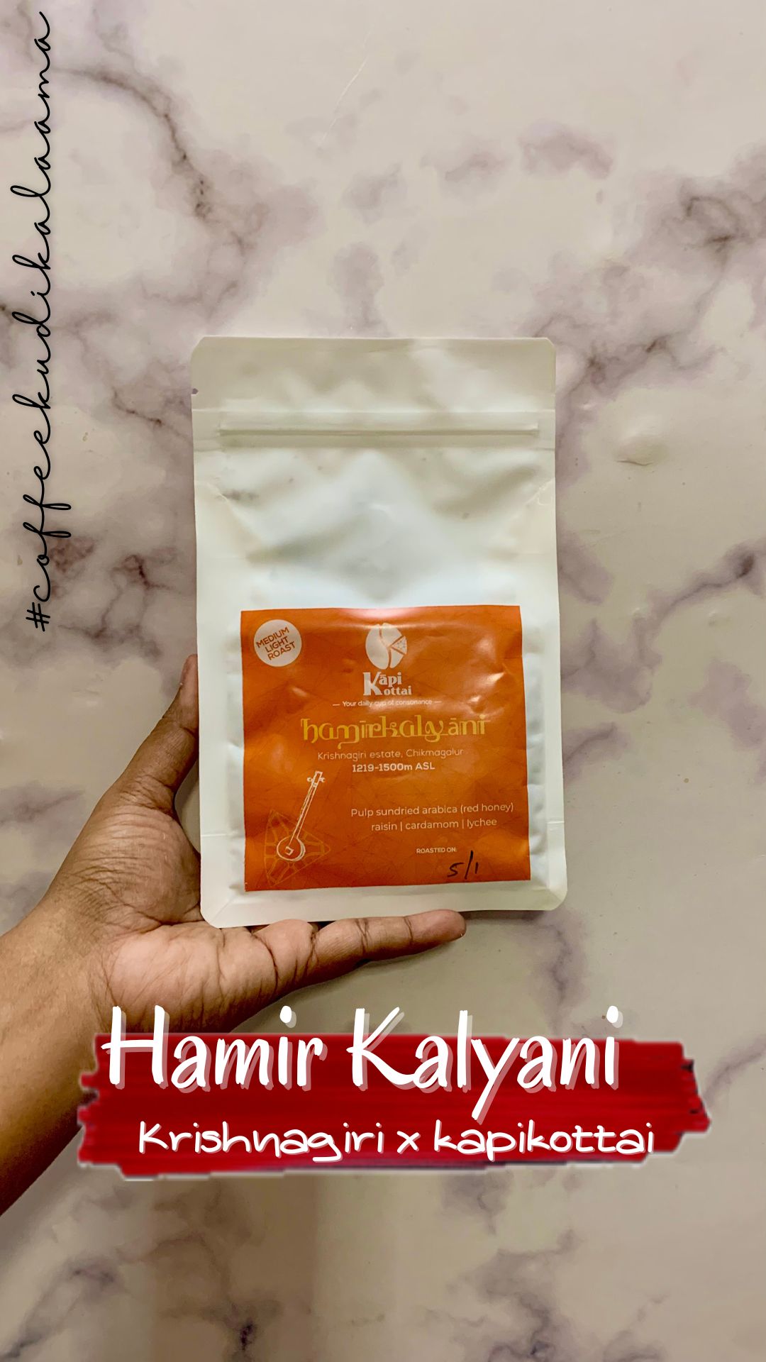 | 5 | Hamir Kalyani | Kapikottai | Tamil Nadu | Krishnagiri | Karnataka | SLN 795 | Red Honey Pulp Sun Dried | ||
